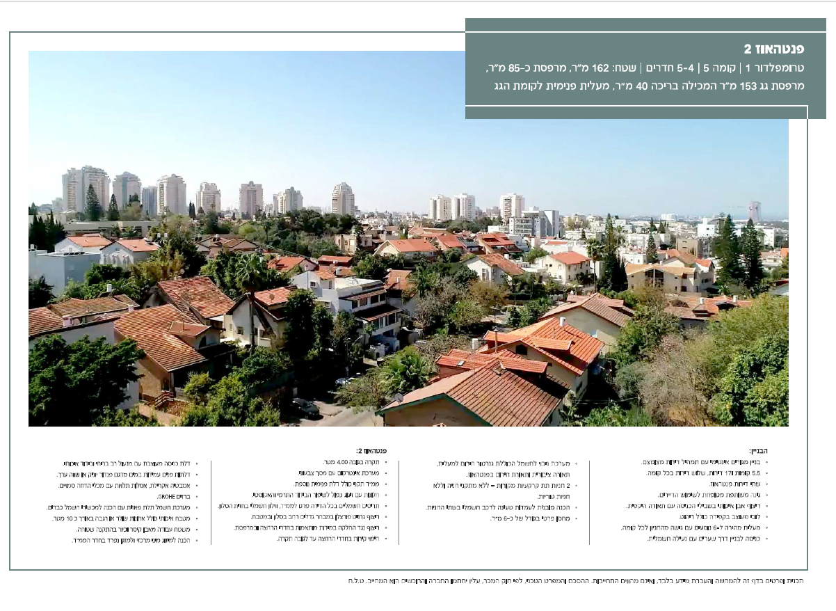 – דירת 162 מ"ר עם מרפסת 85 מ"ר + מרפסת גג ענקית הכוללת בריכת אינפיניטי